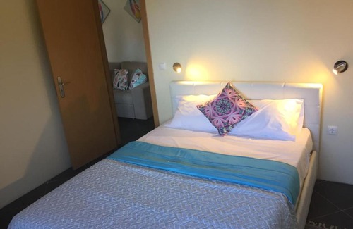 BathroomShower, Private Bathroom, Bathtub or shower, Towels, Toilet paperGeneralSafe, Heating, Tile/Marble floor, Trash cans, Fire extinguisherMedia & TechnologyTV, Satellite channels, Flat-screen TVKitchenRefrigerator, Microwave, Washing machine, Kitchen, Stovetop, Toaster, Cleaning products, Coffee machine, Dining table, Wine glassesLiving AreaSitting area, SofaBedroomWardrobe or closet, LinensOutdoorsBarbecueAccessibilityEntire unit located on ground floorRoom AmenitiesDrying rack for clothing, Sofa bed, Socket near the bedFood & DrinkBottle of water |
