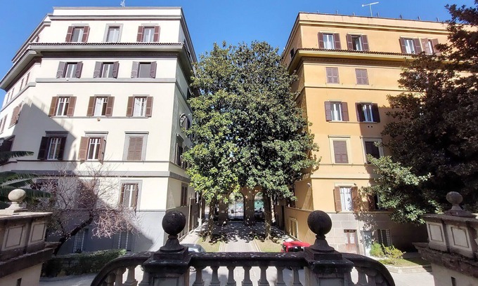 Parioli is one of the most elegant and residential neighbourhoods of Rome, not far from the city centre. It is full of high-level restaurants, cinemas, theatres and stores of the best brands. It is located between two large parks: Villa Ada, ideal for sports lovers, and Villa Borghese, an enchanting setting for pleasant walks to Via Veneto, Piazza di Spagna, Piazza del Popolo and the famous Borghese Museum. Newly renovated 110 sqm apartment with a terrace in a twentieth century, Baroque style building in a wonderful condominium in the Pinciano (Parioli) neighbourhood. The condominium is located 3.5 km north east of the historic centre of Rome and only a 12 minute walk from Villa Borghese. The condominium has a large garden and there is a 5 minute walk and stairs(30) to do from the entrance to the building to the apartment.