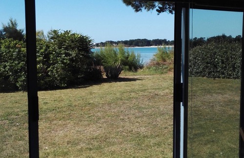 Seaside apartment, feet in the water! on the ground floor with veranda, direct access to the garden of the beach! It consists of a living room (TV & WIFI) with dining area, a small kitchen, a bedroom with a large bed 2 people, a bathroom with toilet and a large veranda overlooking the sea and the tamarisk! garden and private parking (possibility of sleeping for 2 more people in the sofa bed in the living room).