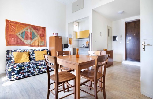 The flat is a bright and comfortable 40 sq.mt one-bedroom apartment, all restructured and furnished, with a beautiful historical city centre view, in a posh building of the Thirties.