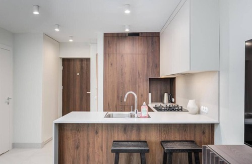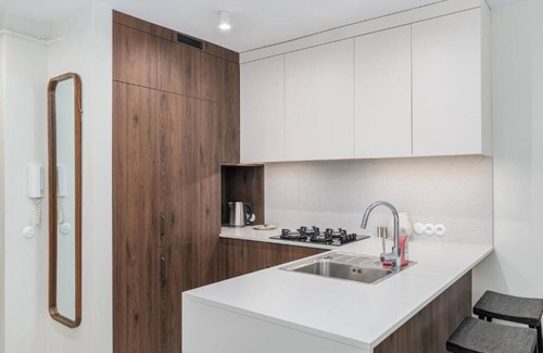 Step into a bright and inviting studio designed with your relaxation in mind. The apartment features a comfortable queen-size bed 🛏️, a modern bathroom with a shower 🚿, and a fully equipped kitchenette 🍽️. You'll find all the essential appliances for preparing meals, including a dishwasher, oven, gas hob, and refrigerator 🧑🍳.