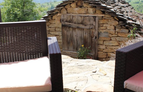 The apartment, located on the ground floor of the property, provides spacious self catering accommodation with all the facilities necessary to make your stay as comfortable as possible. There is an open plan living room/dining area/kitchen with double sofa bed, dining table & chairs (to seat 4 people) and a well equipped kitchen including oven, hob & fridge. There is a double bedroom and a bathroom with shower. The apartment overlooks the valley & has a patio area with table & chairs on which you can relax and enjoy the view and a glass of local wine.