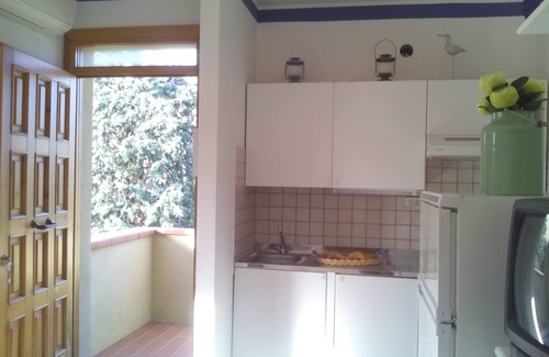 "Passione Marinara" is a very nice and bright apartment, each room has a window, bathroom included and all the windows overlook green and tree-lined areas, including the veranda-terrace from which you can enjoy a beautiful view on the west side of the village. The entrance to the villa is independent, it is accessed by a gate that opens electrically from inside the apartment or outside with keys, it opens onto a rectangular courtyard of about 6 square meters. where it is possible to conveniently park bicycles and strollers. Also present a tap that can be used once back from the beach. The stairs leading to the apartment; they are comfortable, so much so that even the youngest children can easily climb them. The furniture and the environments are treated in detail, with fresh and delicate tones that recall the marine style and that will not give you that feeling of having set foot in a sterile and cold environment, as often happens when you rent a house for the holidays, but rather, to have found a cozy and warm nest. It consists of a living room, kitchenette, two bedrooms with two large wardrobes, one double and the other double with the possibility of obtaining a double bed, bathroom with shower, toilet, bidet, washing machine, hairdryer. The kitchen is equipped with an electric oven, a four-burner gas hob, a fridge with a small freezer, a television, kitchen utensils, crockery, cookware and so on. The beds have all the slats and the mattresses are very comfortable, in the living room there is a comfortable sofa bed. Present safe, air conditioner and heating system with natural gas. From the living area there is access to the covered terrace which is equipped with rain - sun curtains that guarantee the habitability even in case of rain. On the terrace you will find a table for 4/6 people and garden chairs where you can have lunch and / or dinner, as well as a tap for cleaning the house. Also the window of the second bedroom and the bathroom has an outdoor awning that allows constant ventilation and refreshment to the whole room.