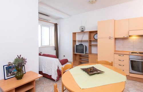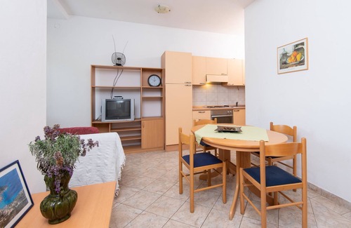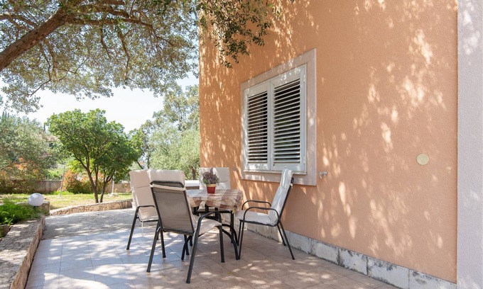 Accommodation Ivona offers space up to 4 guests. The picture perfect nature and sandy beach and concrete slabs beaches are 100 m away. Share the photos of your well-deserved vacation using Internet available for your use. No crowds, no fixed mealtimes and no overcrowded terraces - awake your inner chef using available Grill and indulge in delicious local food. Refresh and unwind on 30 m2 terrace we are sure you’ll love. Nice little added bonus is view of Green area and garden.