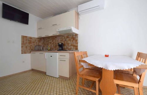 Apartment Klara 2 is a bungalow with a size of 35 m2 and is located in the yard of a family house that offers another larger apartment. This bungalow is ideal for 2 to 3 people, it offers one bedroom, a kitchen with a dining room, a bathroom with shower, and a comfortable terrace. It is located 700 meters from the center of the city of Krk, providing privacy with easy access to all local amenities. Guests can enjoy air conditioning, TV-SAT, coffee maker, WiFi, barbecue in the garden, and several parking spaces that make their stay even more pleasant. Unfortunately, pets are not allowed in this house.
