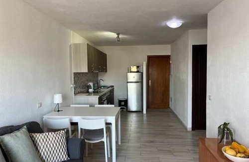 Sunny, newly renovated apartment with 2 bedrooms. Lots of light and a large terrace where you will probably want to have breakfast, lunch and dinner! Fully new kitchen, with oven, microwave, etc. Quiet building with swimming pool (with an area for kids). Right next to green areas, overlooking a park.The area is quiet and peaceful, not overcrowded. Close to the airport (15 min) and a great base to explore the island.