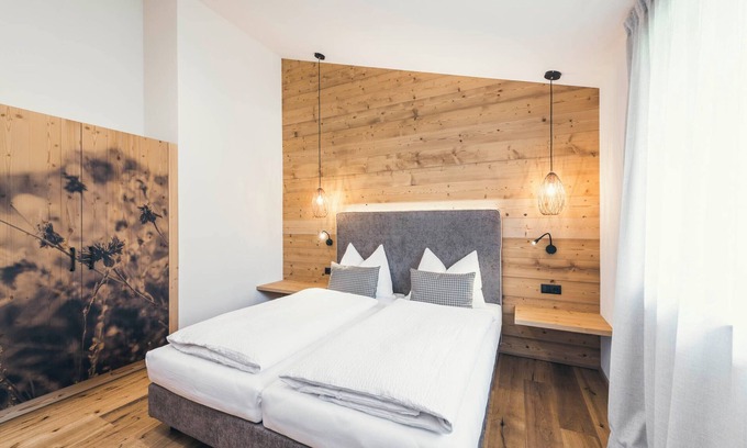The farm "Woldererhof" is in the hands of the Gasteiger family since 1912 and welcomes its guests at the edge of the forest of the recreational area Mareiter Bach. The surrounding area invites you to take relaxing walks in the beautiful South Tyrolean mountain landscape. The modern apartment "Lichtung Woldererhof Auszeit" awaits its guests in the three-valley community of Ratschings, where hospitality and tradition are lived. The region is worth a visit at any time of year. Throughout the Woldererhof, the power supply and heating are sustainably provided by renewable energy sources. The apartment, furnished with great attention to detail, has a living room, a well-equipped kitchen with dishwasher, 2 bedrooms, 2 bathrooms and can accommodate 5 people. Additional amenities include Wi-Fi (suitable for video calls), SAT-TV and a wooden floor with underfloor heating, which provides a pleasant indoor climate. In the child-friendly accommodation you can get a baby crib and a high chair on request.