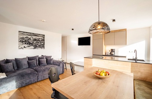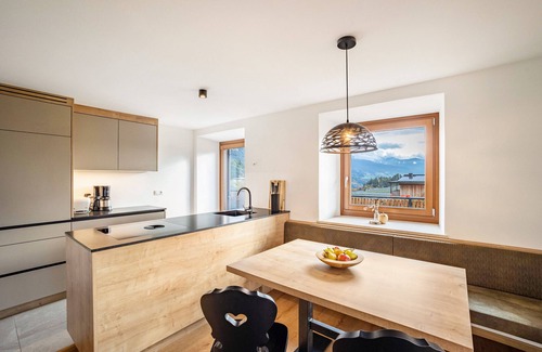 Boasting a beautiful view of the Alps, the holiday apartment Linderhof Panorama Terrasse with step-free access is located in Natz. The 55 m² property consists of a living room, a kitchen, 2 bedrooms and 1 bathroom and can therefore accommodate 4 people. Additional amenities include high-speed Wi-Fi (suitable for video calls) with a dedicated workspace for home office as well as a TV. In addition, a table tennis table is available for your use. The building in which the accommodation is located has an elevator. This vacation rental features a private outdoor space with a covered terrace and balcony.
