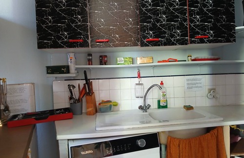 The apartment has 2 comfortable bedrooms, 1 with a double bed and 1 with a bunk bed. The bathroom has a shower. A separate toilet is available.
