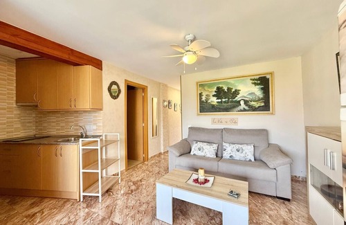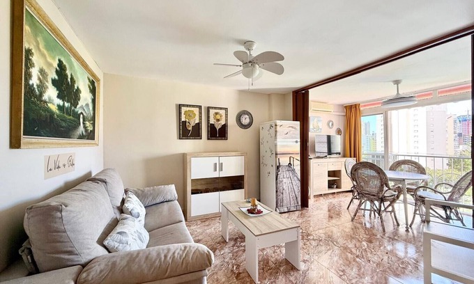 The apartment in Benidorm has 1 bedroom(s) and capacity for 4 people. Accommodation of 50 m² cosy and modern. It is located in an ideal area for families and in the residential complex. It has a lift, washing machine, iron, communal + children's swimming pool, 1 Television. The American kitchen, electric, is equipped with fridge, microwave, oven, freezer, kitchen utensils, coffee maker and kettle.Important information about arrival time: The key collection time is from 4:00 PM to 7:00 PM; if you wish to arrive earlier, it will depend on availability, and we cannot provide information until the day of arrival. If you arrive after 12:00 AM, there will be a late check-in fee of €45. Said amount will be charged the day after arrival or, failing that, will be deducted from the deposit.