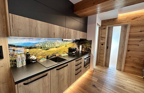 Modern, luxurious residence "Máj", 3 storeys, detached, renovated in 2023. In the centre of Pec pod Sněžkou, 100 m from the edge of the forest, 1.3 km from the skiing area, 10 m from the river. In the house: storage room for skis, central heating system. Parking at the house. Shop 60 m, grocery 200 m, restaurant 60 m, bar, café 100 m, bicycle rental 500 m, pub garden 60 m, bus stop "Pec pod Sněžkou" 300 m, indoor swimming pool 500 m. Sports centre 500 m, walking paths from the house, cycle lane 20 m, ski lift 1.3 km, chair lift 1.3 km, skisport facilities 1.3 km, ski rental 60 m, ski bus stop 200 m, ski school 1.3 km, children's ski school 1.3 km, cross country ski track 150 m, children's playground 400 m. Nearby attractions: Relaxpark, bobová dráha 400 m, Sněžka (lanovka) 1.2 km, Obří důl, Modrý důl, vodopády 3 km, Malá Úpa 8 km, Janské Lázně 15 km, Vrchlabí, Trutnov 30 km. Well-known ski regions can easily be reached: Pec pod Sněžkou – Černá Hora 1.3 km, Velká Úpa 2.5 km, Janské Lázně 15 km. Well-known lakes can easily be reached: Dolce 25 km. Hiking paths: Krkonošský národní park. Groups of teenagers on request only. The owner does not accept any youth groups.