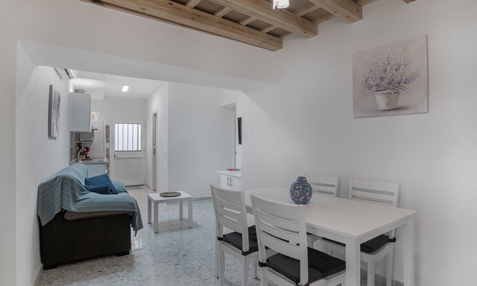 The holiday apartment El Magnolio with step-free interior in Vejer de la Frontera is the perfect accommodation for a stress-free holiday with your loved ones. The 67 m² property consists of a living room, a well-equipped kitchen, 2 bedrooms and 1 bathroom and can therefore accommodate 4 people. Additional amenities include high-speed Wi-Fi (suitable for video calls), a TV, air conditioning, a washing machine as well as children's books and toys. A baby cot is also available.