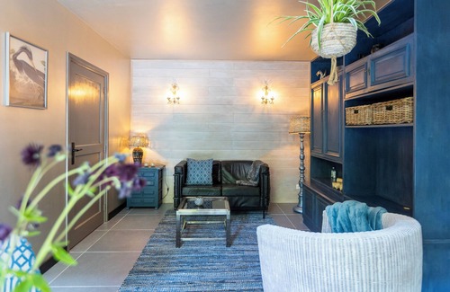 Relax in the garden (enjoy the outdoor furniture!) or sip a drink by the firepit of this apartment. As for the great indoors, you can come inside and enjoy the WiFi and TV.