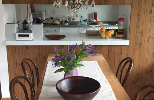 a very sunny, bright apartment with a lot of charm. Big panoramic windows & balcony with stunning views of the mountains. Nicely decorated & tasteful furniture, a cozy place! 1 big spacious living/dining area, 2 bedrooms, 1 open kitchen, 1 bathroom (bathtub/shower), 1 sep. WC, big flat-screen digital-TV (english spoken channels)DVD/bluray player, radio/CD player. free Wi-Fi. dishwasher, microwave,Nespresso coffee machine. 1 storage room.free underground parking space. Public transport included in the Simmental and Saanenland with the SIMMENTAL CARD: Overnight guests in the Lenk-Simmental holiday region travel free of charge on public transport for excursions with a valid guest card.