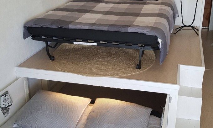 Prepare a home-cooked meal in the kitchen, complete with a stovetop and a refrigerator, as well as an electric kettle, cookware, and a toaster. Bathroom amenities include a hair dryer, towels, and toilet paper. And because there's a washing machine, you can go a bit lighter on your packing. Other amenities include a desk, an ironing board, heating, and wardrobe or closet.