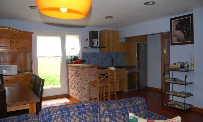 Impeccable ground floor apartment in a detached house, ideal for traveling couples, located in a rural setting, 15 ¨ to Bilbao and the beaches of Sopelana, Plentzia and Bakio. Bus line to the center with stop in front of the accommodation. Quiet place with garden area, 5 "from Mungia with pintxos bars and all services. Due to its unbeatable location it is ideal to visit the Guggenheim, the biosphere reserve of Urdaibai, and the most beautiful coastal towns. No problems to park the car.
