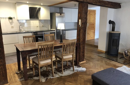 Welcome dear guest, dear guests! Our apartment with flair in a top location warmly invites you. This special accommodation has all the important amenities close by: Baker, butcher, doctor, pharmacy, several restaurants and stores, the forest outdoor pool and the bus station - all within walking distance, so planning your stay is very easy. You live in the center/old town of Pfullendorf and yet there is little traffic here because the house is in a cul-de-sac. The parking garage is about 100m away, a parking space there is included with the apartment. There are numerous possibilities for excursions: the Seepark Pfullendorf with swimming area, adventure minigolf, soccer golf, restaurants and a small zoo. Lake Constance is approx. 20 km away. A canoe tour in the Danube valley can be reached from Sigmaringen approx. 20 km away. Worth seeing is the Pfrungener Ried, a nature reserve with hiking and cycling trails about 15 km away. Try out our Räuber-Bähnle from Pfullendorf to Aulendorf, which runs every Sunday and on public holidays in summer. Have fun discovering our little town of Pfullendorf and the surrounding area in the northern Lake Constance region!