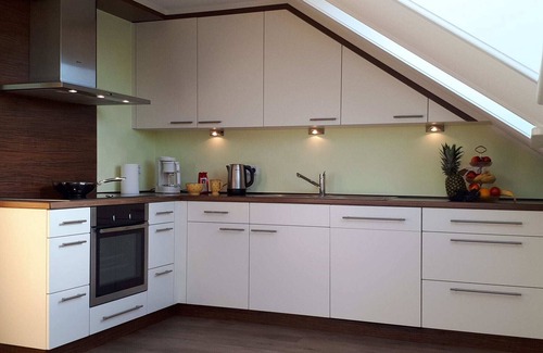 The apartment is an attic flat and does not allow smoking. It has all facilities for a pleasant stay. The living-dining room comes with a TV, dining table, and seating area. You can cook meals during the stay in the modern kitchen. The terrace and garden are perfect to relax outdoors and enjoy the sun.