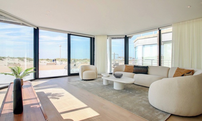 Luxurious holiday apartment on the sea wall of Nieuwpoort Bad – ground floor, 3 bedrooms, 2 bathrooms, spacious garage and 2 large terraces Enjoy a stylish and carefree holiday by the sea in this ultra-modern and bright holiday apartment on the sea wall of Nieuwpoort Bad. Situated on the ground floor, with both a large terrace at the front with sea view and a large sun terrace at the rear, this apartment offers all the luxury and comfort for a relaxing stay on the Belgian coast. The apartment is always wheelchair accessible via the sea wall, there is 1 step via the Albert I laan. With 3 spacious bedrooms and 2 modern bathrooms, there is room for families or groups who value comfort and privacy. The living space is contemporary, with large windows that provide plenty of natural light. The fully equipped kitchen makes cooking easy, whether you opt for an extensive dinner or a quick lunch for the beach. A washing machine is also provided. The separate, spacious desk makes working or studying from home particularly comfortable. This apartment has a very spacious private garage with extra space for bicycles and direct access to the apartment via a staircase. Due to its location on the ground floor, the apartment is wheelchair-friendly and perfectly accessible for everyone Final cleaning is included