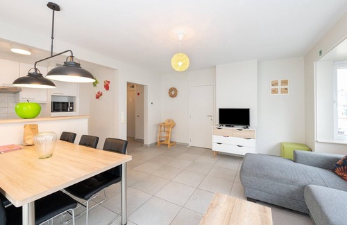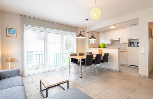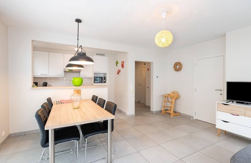 Welcome to this spacious and modern apartment located at Elisalaan 10, just steps away from the vibrant Nieuwpoort Bad tram stop and the newly constructed underground car park. Situated in the heart of Nieuwpoort Bad, this apartment offers unparalleled convenience with shops, restaurants, the harbor channel, tourism office, and the cultural center "Isara" all within easy reach. Ideal for families or groups of up to 6 people, this apartment features three separate bedrooms ensuring privacy and comfort for all guests. A separate shower room and toilet enhance convenience, allowing for easy access and usability during your stay. Outside, enjoy the beauty of a traffic-free promenade along the stunning sandy beach just moments away. Take leisurely walks along the picturesque pickets or try your hand at fishing with the large nets, promising beach fun for both young and old alike. The bright living room is a perfect gathering space, complete with an open kitchen equipped with everything you need to prepare delicious meals. Entertainment is at your fingertips with a Smart TV, free WiFi, and a selection of games and comics provided for your enjoyment. Soundproof glass ensures a peaceful environment amidst the lively surroundings. A security deposit of EUR 195,00 will be required closer to your check-in date. You will receive a separate communication with the payment link. The security deposit ensures a smooth stay and covers any additional services such as cleaning, service charges, consumption, damages or any additional charges incurred during stay. Any balance from the deposit will be refunded within 21 days after checkout.