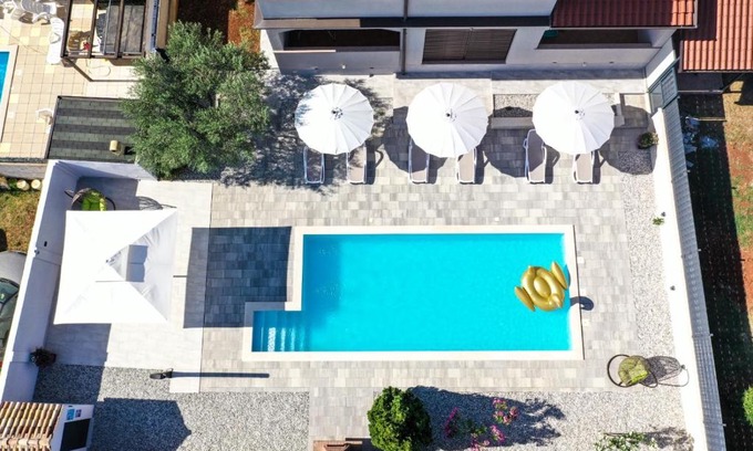 Providing a garden, Apartment Nina with private pool offers accommodations in Nova Vas. This 3-star guest house offers a seasonal outdoor swimming pool. There's an outdoor fireplace and guests can use free Wifi and free private parking. Offering a terrace and garden views, the guest house includes 2 bedrooms, a living room, TV, an equipped kitchen, and 1 bathroom with a shower. Towels and bed linen are offered in the guest house. There's also a seating area and a fireplace. Guests can make the most of the warm weather with the property's barbecue facilities. Aquapark Istralandia is 14 miles from the guest house, while Cathedral St. Eufemia Rovinj is 27 miles from the property.