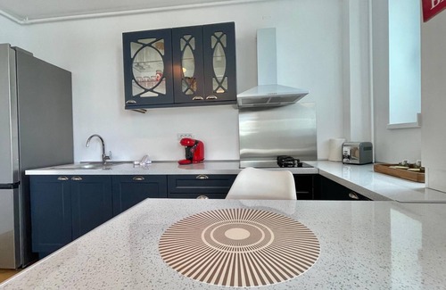Fully equipped Kitchen: The kitchen is equipped with modern appliances, including a gas and induction hob, electric oven, fridge with freezer, microwave, coffee maker, and all the utensils you need to prepare delicious meals. Whether you want a romantic dinner or a family meal, cooking is made easy.