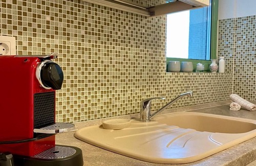 The apartment includes a spacious bedroom with a cozy double bed and a bright living room with an extendable sofa, perfect for relaxation. The kitchen is fully equipped with modern appliances, including a Nespresso machine for coffee enthusiasts. The bathroom is complete with all essential amenities, including a washing machine, and the 4.5 sqm balcony offers a pleasant spot to enjoy the fresh air and view.