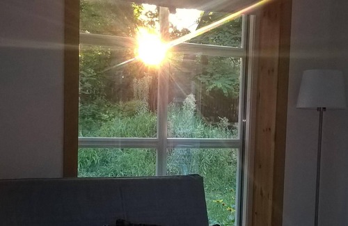 Cozy guest bungalow made of wood with terrace and underfloor heating, in the middle of nature, surrounded by forests, fields and lakes - pure relaxation-you'll love it.
