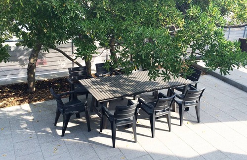 * ground floor terrace has 10 tables and chairs for relaxing, eating, reading a book and barbecue facilities