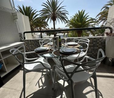 Featuring a garden, Apartment Palm Tree View provides accommodations in Maspalomas. Among the facilities at this property are an elevator and full-day security, along with free Wifi throughout the property. The property features a children's playground. Offering a terrace and sea views, the apartment includes 1 bedroom, a living room, satellite flat-screen TV, an equipped kitchen, and 1 bathroom with a walk-in shower. Towels and bed linen are featured in the apartment. The property has an outdoor dining area. Bike rental and car rental are available at the apartment, and the area is popular for cycling and hiking. In addition to a year-round outdoor pool, Apartment Palm Tree View also offers kids pool. Meloneras Beach is 1.8 miles from the accommodation, while Aqualand Maspalomas is 2 miles from the property. Gran Canaria Airport is 18 miles away, and the property offers a paid airport shuttle service.
