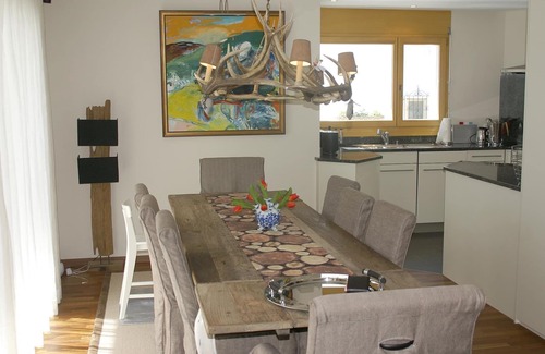160 m2. More information by the provider: BESTZEIT HOLIDAY APPARTMENT Modern furnished 4.5 - room flat in walking distance to the centre of Churwalden. The flat has an open kitchen and spacious living room in combination with dining area and fireplace. The flat has a large sun terrace and a south-facing covered balcony.