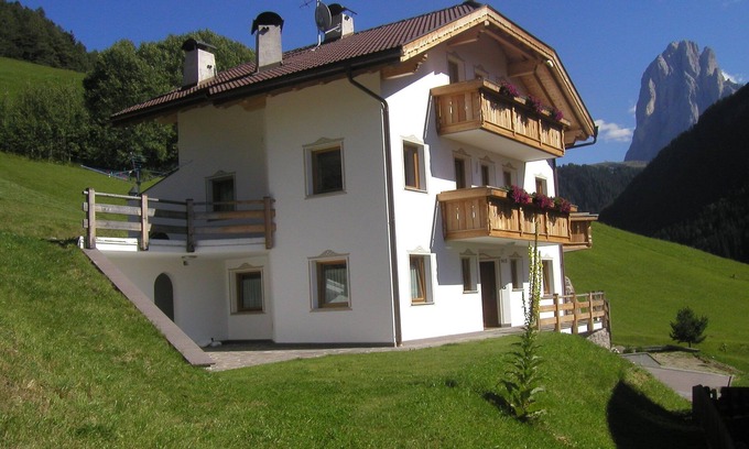 The Prapaul house is located in a sunny and quiet location, on the eastern outskirts of Ortisei. You have a wonderful view of the beautiful mountain Sassolungo. The summer guests have the opportunity to relax on the well -kept lawn next to the house. The village center of Ortisei is reached with a cozy walk of 15 minutes. In winter there is the stop of the ski bus service nearby (300 m), with which you can reach all the ski slopes of the village and the valley. The Dorigo family is happy to welcome