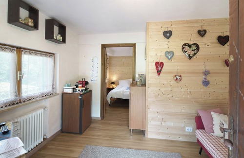 The holiday apartment Room and Garden Altavista Mia, featuring step-free interiors, is located in Ziano di Fiemme and offers a spectacular view over the entire Val di Fiemme. The 22 m² property consists of a living room with a small sofa bed for one person (use of the sofa bed for the third person is included), one bedroom, and a bathroom with a spacious shower and toilet, accommodating up to 3 people. Additional amenities include high-speed Wi-Fi (also suitable for video calls), a TV, and a fan. The accommodation does not have air conditioning. Outside, you can enjoy a private space with a garden, wooden gazebo, sun loungers, and a barbecue.