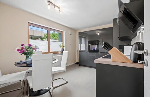 Located in Überlingen, the 80 sqm apartment Rosenquarz offers comfortable accommodation for up to 4 guests. You will find 2 bedrooms, 1 bathroom, a living room, and a well-equipped kitchen. The apartment features high-speed Wi-Fi suitable for video calls, a TV, and self check-in for your convenience. A baby bed is available for families traveling with infants.