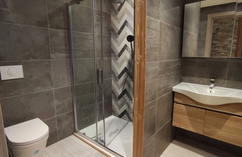 The advantages of this accommodation: - New apartment suitable for disabled people - Ideal location, right in the center: shops, ski school, slopes, tourist office, daycare in the immediate vicinity - Large surface area Kitchen: Kitchen area Kitchen equipment: Ceramic hob, oven electric, Microwave, Dishwasher, Fridge, Kettle, Toaster, Raclette grill, Senseo coffee maker, Waffle/croque monsieur maker Living room: Sofa Bedroom 1: 1 Bed(s) 2 people (140cm ), Private bathroom in bedroom, TV in bedroom, Blind bedroom Bedroom 2: 1 Bed(s) for 2 people (140cm), TV in bedroom Bedroom 3: 140cms 2 double bunk beds, Blind bedroom Bedroom 4: 2 Bunk beds , Blind bedroom Bathroom: With 1 shower, PRM bathroom with WC Wc: 1 Independent(s), 1 In bathroom Options: Single sheet rental Double sheet rental Towel kit rental In addition, on request: end of stay cleaning stay