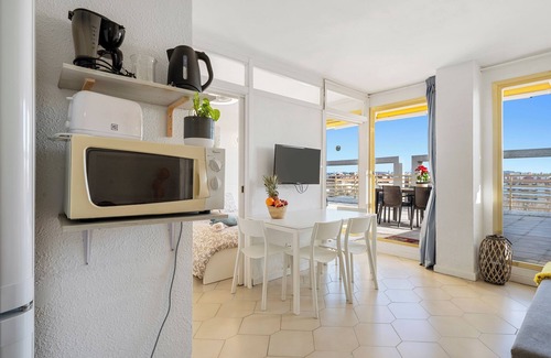 In Salou, the holiday apartment Salou beach offers an excellent view of the Mediterranean Sea. The 40 m² property consists of a living room with a sofa bed for 2 people, a well-equipped kitchen, 1 bedroom and 1 bathroom and can therefore accommodate 4 people. Additional amenities include high-speed Wi-Fi (suitable for video calls) with a dedicated workspace for home office, a TV, air conditioning, a fan as well as a washing machine. A baby cot is also available.
