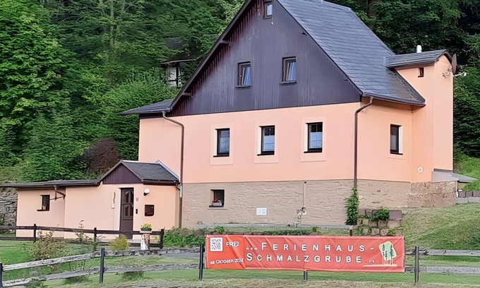 The holiday apartment Ferienhaus Schmalzgrube is located in Jöhstadt and is the ideal accommodation for a relaxing getaway. The 59 m² property consists of a living room with a sofa bed for one person, a kitchen, 2 bedrooms and 1 bathroom and can therefore accommodate 4 people. This accommodation does not offer: Wi-Fi and towels. This vacation rental offers a private outdoor space with a garden and barbecue.