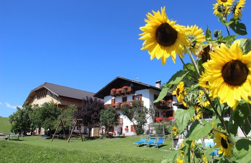 At Gschtraffhof in Kastelruth, you can relax and stay active: There is a heated outdoor pool, a garden with a playground, table tennis, a bike and ski room, as well as a charging station for electric cars (available for an additional fee). The farm produces milk and dairy products, its own herbs, vegetables, and honey. You can enjoy the sunny, quiet location with an impressive panoramic view of the Schlern massif, the first range of the Dolomites. Escape everyday life, enjoy nature, sunshine, and fresh mountain air. Many animals are the heart of the farm, and numerous hiking trails start directly at the house. Ample parking is available. Pets are allowed. Events are not permitted. In winter, the ski bus stop is only 50 meters away and offers convenient access to the lifts and slopes. The pool is heated from June to September if needed.