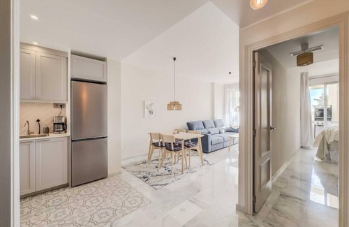 With a view of the Mediterranean Sea, the holiday apartment Sea View Paradize in Fuengirola is perfect for a relaxing holiday. The 78 m² property consists of a living room with a sofa bed for 2 people, a fully-equipped kitchen, 2 bedrooms and 2 bathrooms and can therefore accommodate 5 people. Additional amenities include Wi-Fi, a smart TV with streaming services, air conditioning, a washing machine as well as a dryer. In addition, a table tennis table and a shared gym are available for your use. A baby cot and a high chair are also available. This vacation rental offers a private outdoor area with an open terrace and a barbecue.