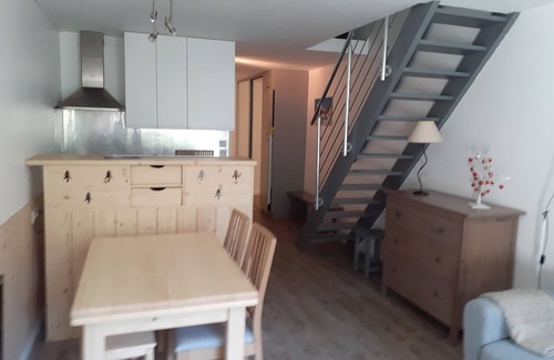 Duplex at the foot of the ski slopes, composed of a living room with TV, fitted kitchen (oven, refrigerator, dishwasher) bathroom (bath) separate toilet, on the 1st floor and a large attic room (maximum height one. 60m) with a double bed and 2 single beds