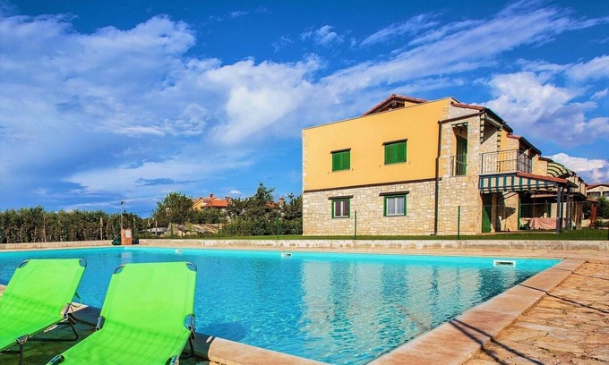 Modernly furnished apartment with a common swimming pool, and a large roof terrace with a sea view. Apartment Sofia can accommodate up to 4 persons with a total living space of 88 m2. It consists of an air-conditioned living room, a bathroom with a shower, a fully equipped kitchen with a dining table, one bedroom with two single beds, one bedroom with a double bed, and a large roof terrace. Wi-Fi and air-conditioning are included in the price. Apartment complex Gedici has a large communal swimming pool and tennis court available to all guests. The pool has an area of 200 m2. Parking is free and located in front of the apartment. Gedići is a little village situated only 6 km from the Poreč downtown, 7 km from the beach Lanterna near Tar, and 5 km from the beach Materada in Poreč. The village is really nice, surrounded by nature, vineyards and bicycle paths, ideal for families and all of those who are searching for a relaxing holiday. The swimming pool is open from 1st of June until the 30th of September.