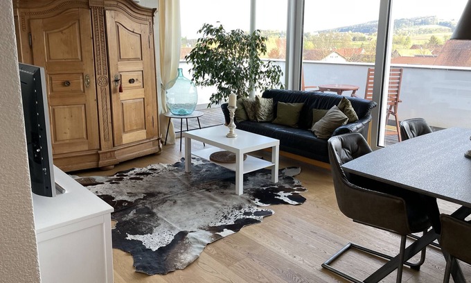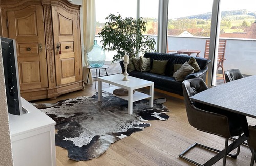 Apartment "Sonnige Penthouse" with Mountain View, Terraces & Wi-Fi is located in Deggenhausertal. Apartment "Sonnige Penthouse" with Mountain View, Terraces & Wi-Fi provides accommodation, featuring TV, Wheelchair Accessible, Balcony/Terrace, among other amenities. This Apartment features TV, Wheelchair Accessible, Balcony/Terrace, to make your stay a comfortable one.