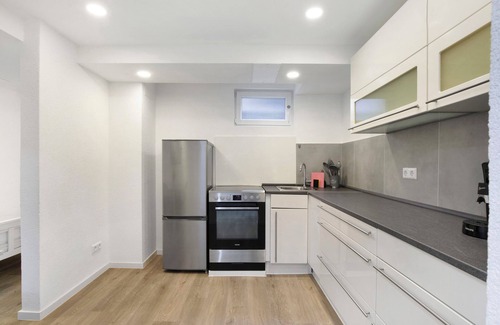 In Göppingen, the holiday apartment Souterrain Studio offers an excellent view of the mountain. The 50 m² property consists of a living room, a fully-equipped kitchen, 2 bedrooms and 1 bathroom as well as an additional toilet and can therefore accommodate 3 people. Additional amenities include high-speed Wi-Fi (suitable for video calls) with a dedicated workspace for home office, a smart TV with streaming services, a washing machine as well as children's books and toys. A baby cot and a high chair are also available.