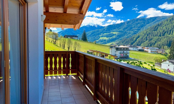 Apartment Huberhof Mareit Wohnung Sunny in Ratschings - Mareit provides 38 sqm of space for up to 3 guests. You have 1 living room, 1 bedroom, and 1 bathroom. A private fully-equipped kitchen is available for your use. The apartment features step-free access and step-free interior. Your private amenities include mountain view, balcony, covered terrace, grill, TV, WiFi suitable for video calls, dedicated workspace, washer, dryer, baby bed, and highchair.