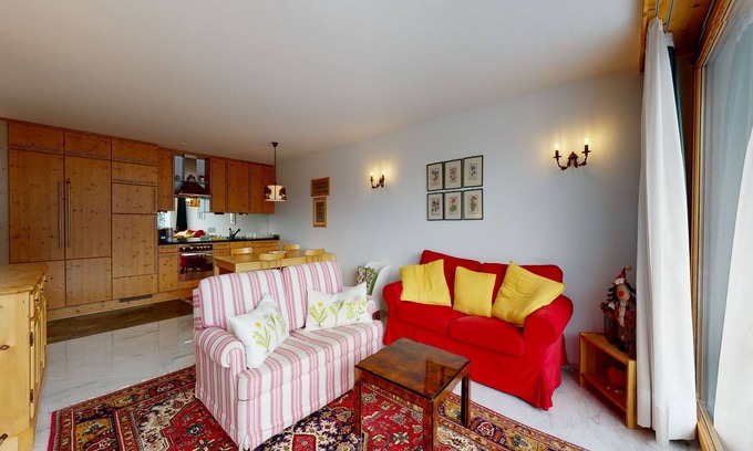 The 2-room apartment is situated above the village center of Samedan. The village center can be reached within a few minutes on foot. Shopping facilities, restaurants, and the bus stop are all in close proximity.