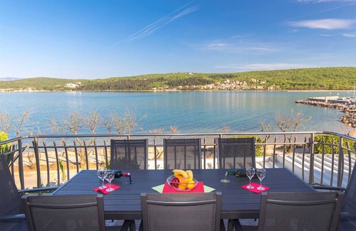 Discover the comfort of Apartment Tamaris D, located right by the pebble beach, shops, and restaurants in the lovely tourist village of Čižići on the island of Krk. With Soline Beach, known for its healing mud, just a short walk of a hundred meters, and the island's attraction - the Biserujka Cave - around 900 meters away, Apartment Tamaris D is the perfect spot for a worry-free vacation. It has two bedrooms, a kitchen with a living room, a bathroom with a shower, and a terrace with a beautiful sea view. Guests can relax on the back terrace with a grill, and we also have private parking. With air conditioning, WiFi, and satellite TV, Apartment Tamaris D is ideal for a relaxing holiday. Pets are allowed for an extra fee. Book now for an unforgettable vacation on the island of Krk!