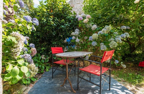 The materials used are environmentally friendly and respect the 19th-century building (lime, wood wool, timber, etc.). The apartment stays naturally cool in summer, even during heatwaves. The 1,500 m² garden is maintained ecologically: mowing is managed by two sheep, no pesticides are used, and local species are respected. Most of the furniture has been sourced second-hand, creating an authentic atmosphere between land and sea.