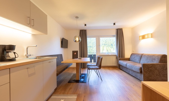 The apartment "VALSORDA" was rebuilt in the spring of 2018. These comfortably furnished apartments can accommodate up to 4 people. It consists of a fully equipped kitchen with dishes, dishwasher, kettle, coffee maker, microwave, sofa bed, a bedroom, bathroom and balcony with stunning panoramic views of our mountain LATEMAR and the village Welschnofen. Fully equipped with hair dryer, satellite TV and free Wi-Fi