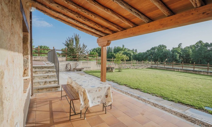 The holiday apartment Casas Rurales Velasco I is located in Cabañas de Polendos and is perfect for an unforgettable holiday with your loved ones. The 196 m² property consists of a living room, a well-equipped kitchen, 3 bedrooms and 4 bathrooms and can therefore accommodate 8 people. Additional amenities include high-speed Wi-Fi (suitable for video calls), a TV, air conditioning as well as a washing machine. In addition, a table tennis table is available for your use. This vacation rental offers a private outdoor space with a garden, covered terrace, and barbecue.