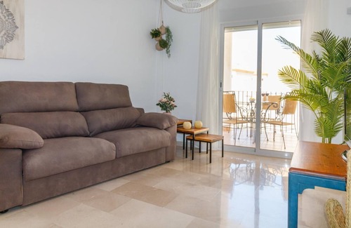 From the apartment you get to the beach directly and in a straight line, it will take less than five minutes walking, the beach is wonderful, quiet and very beautiful. In this area you will enjoy because you have everything at your fingertips: shops, places to eat and enjoy tapas, fried fish, and all the typical gastronomy of the place.